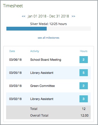 When Charts are enabled, volunteers can check the leaderboard and monthly graph to compare themselves to other volunteers at the organization. However, the Charts page will not always reflect the same number of hours as the timesheet total.